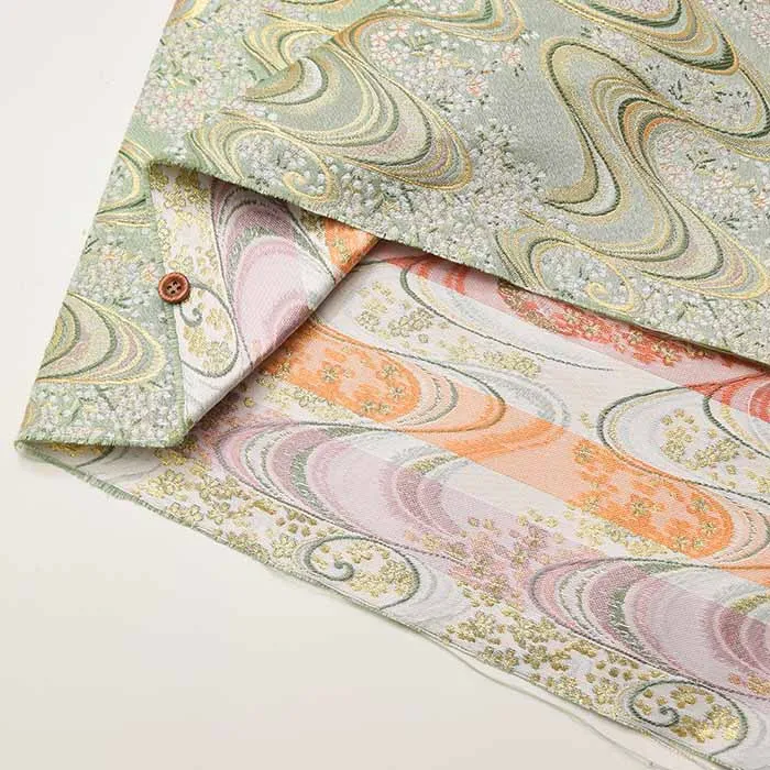 金糸や銀糸に色糸を交えて緯糸にし、紋様が浮き上がるように織った紋織物のひとつです。
