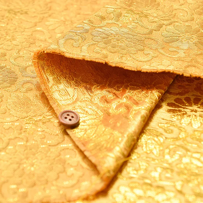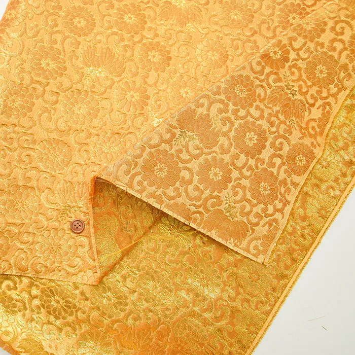金糸や銀糸に色糸を交えて緯糸にし、紋様が浮き上がるように織った紋織物のひとつです。