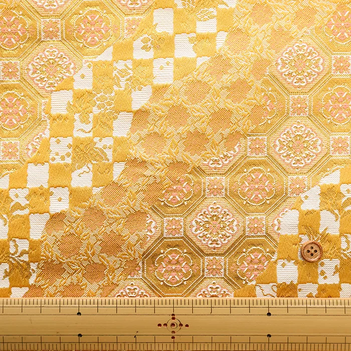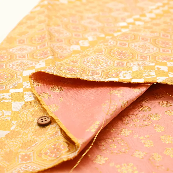 金糸や銀糸に色糸を交えて緯糸にし、紋様が浮き上がるように織った紋織物のひとつです。