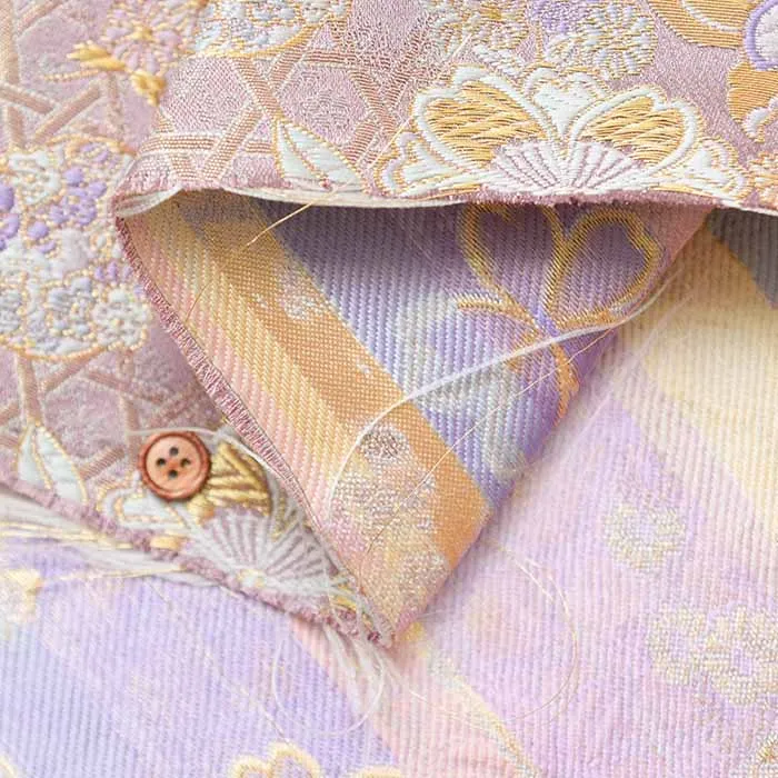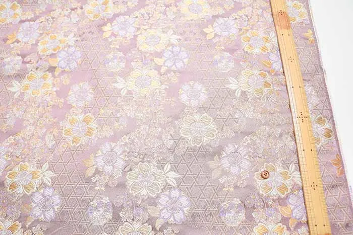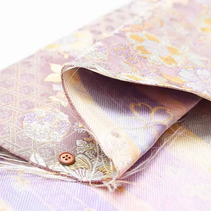 金糸や銀糸に色糸を交えて緯糸にし、紋様が浮き上がるように織った紋織物のひとつです。