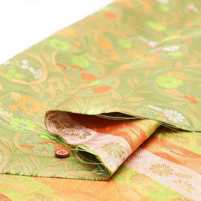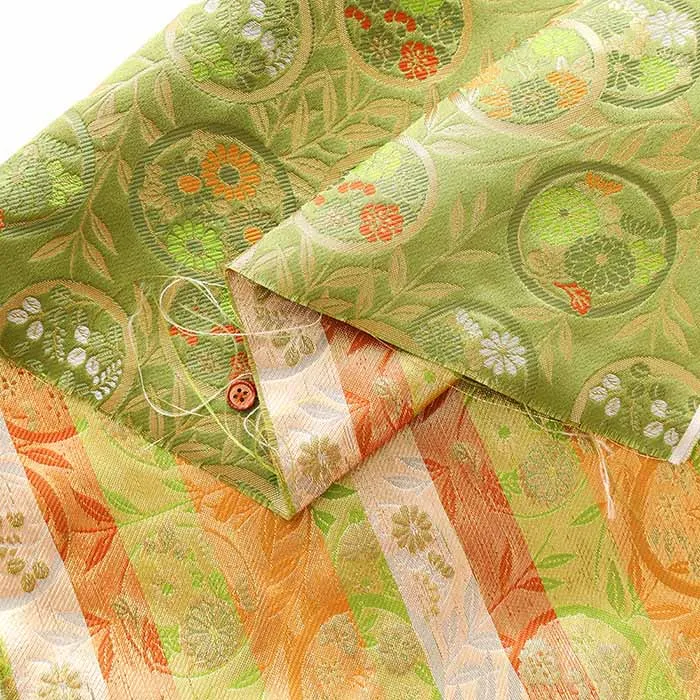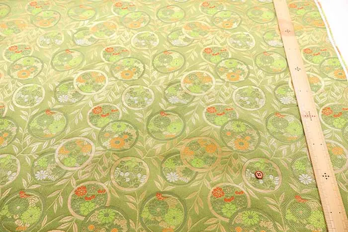 金糸や銀糸に色糸を交えて緯糸にし、紋様が浮き上がるように織った紋織物のひとつです。