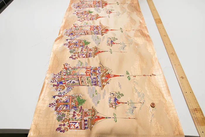 まるで着物の帯のような、京都らしい金糸使いの綺麗な金襴。