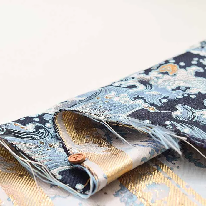金糸や銀糸に色糸を交えて緯糸にし、紋様が浮き上がるように織った紋織物のひとつです。
