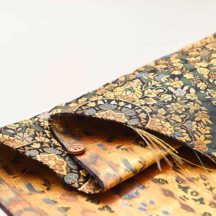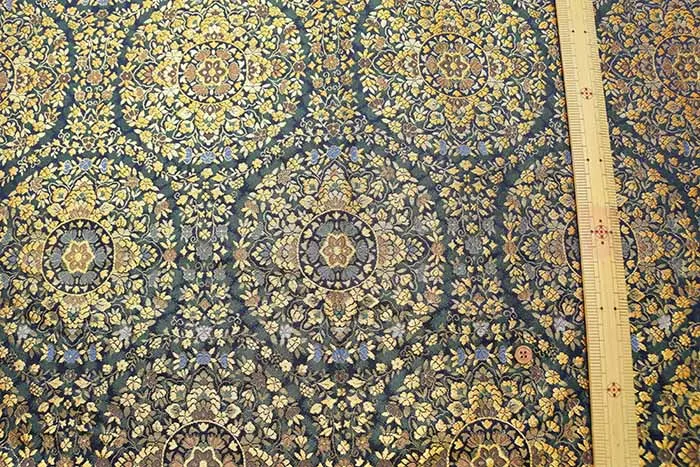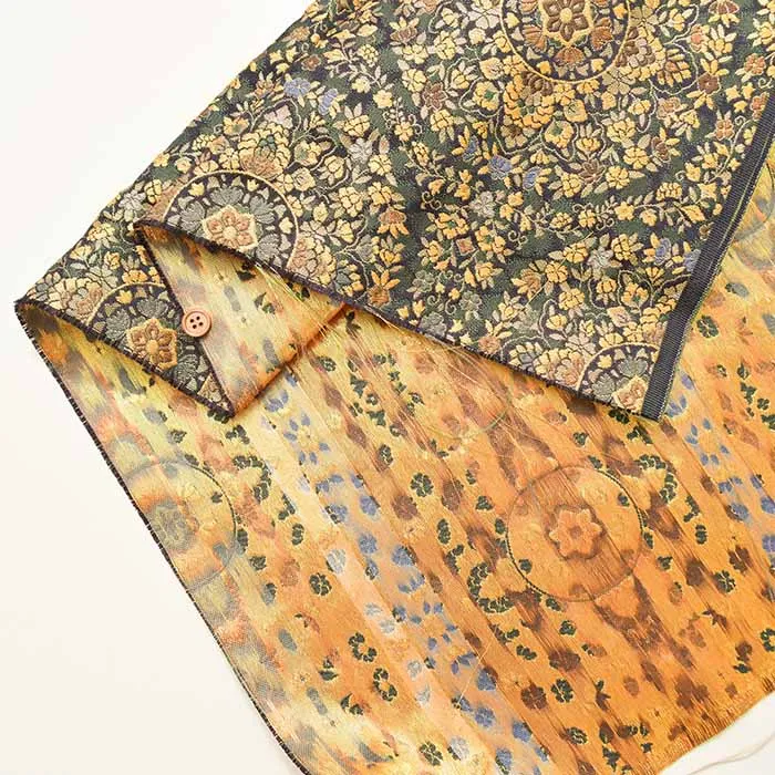 金糸や銀糸に色糸を交えて緯糸にし、紋様が浮き上がるように織った紋織物のひとつです。