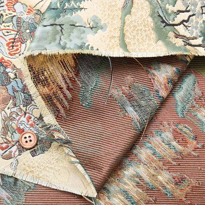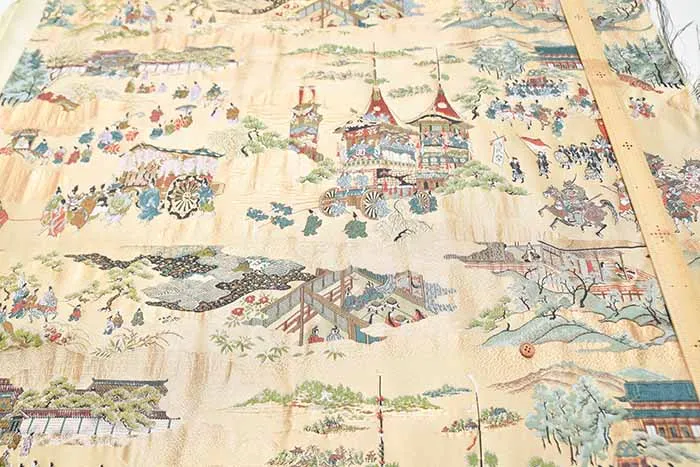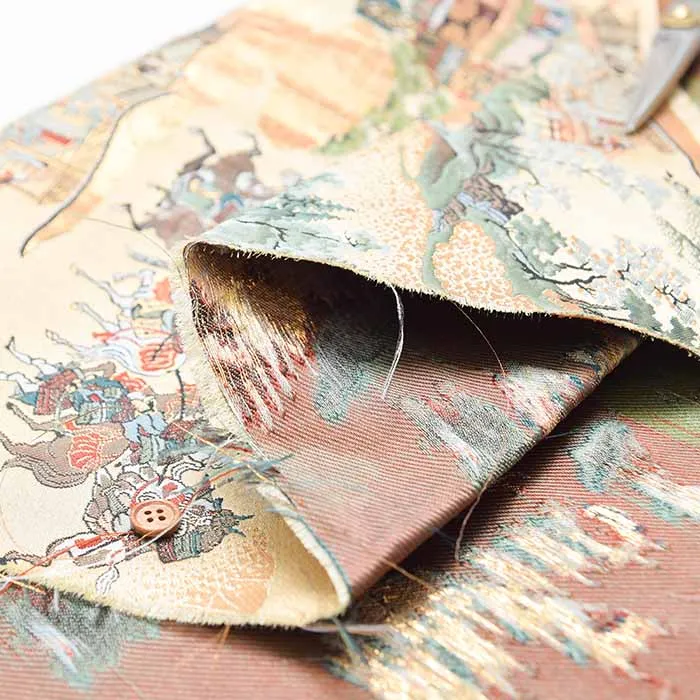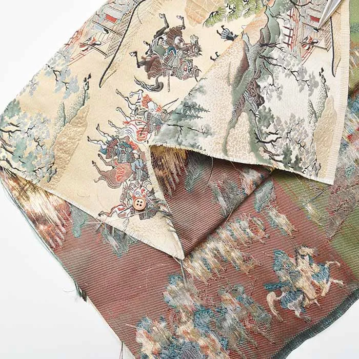 金糸や銀糸に色糸を交えて緯糸にし、紋様が浮き上がるように織った紋織物のひとつです。