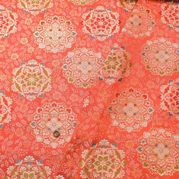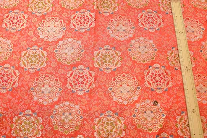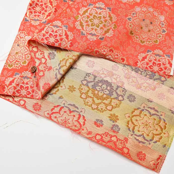 金糸や銀糸に色糸を交えて緯糸にし、紋様が浮き上がるように織った紋織物のひとつです。
