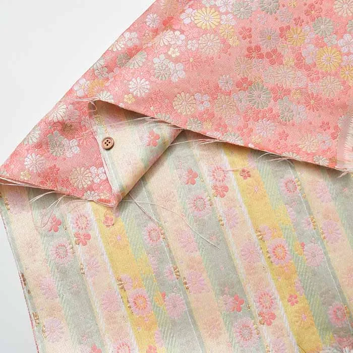 金糸や銀糸に色糸を交えて緯糸にし、紋様が浮き上がるように織った紋織物のひとつです。