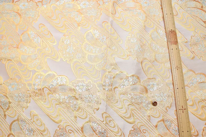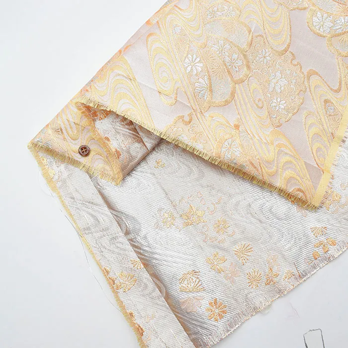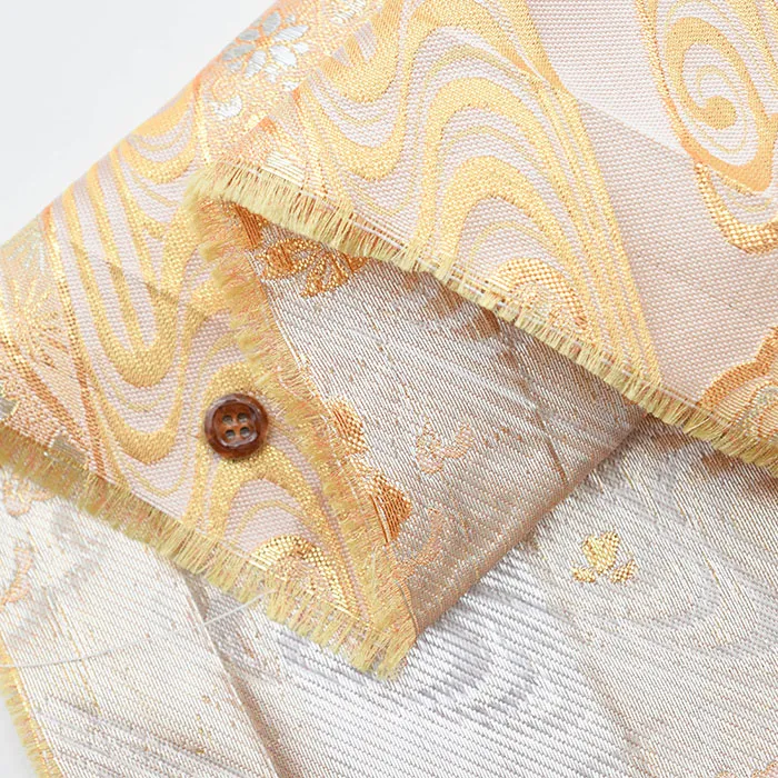 金糸や銀糸に色糸を交えて緯糸にし、紋様が浮き上がるように織った紋織物のひとつです。