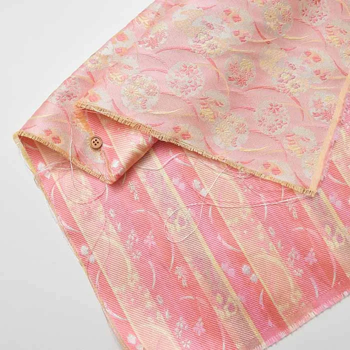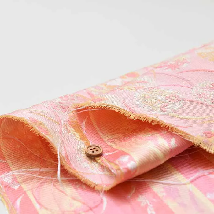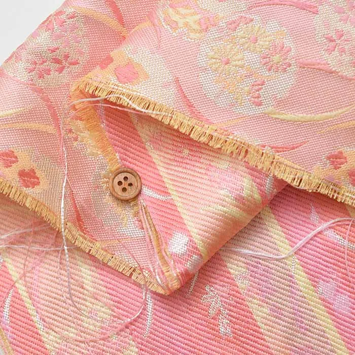 金糸や銀糸に色糸を交えて緯糸にし、紋様が浮き上がるように織った紋織物のひとつです。