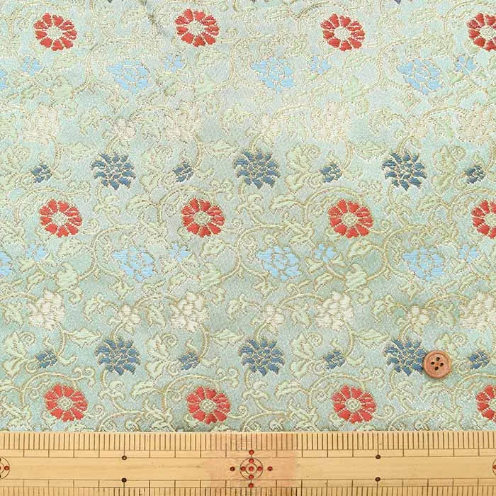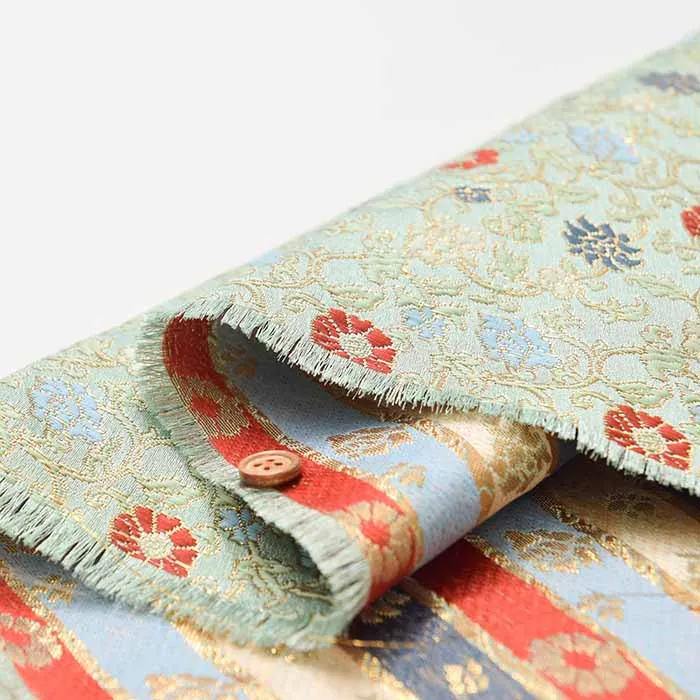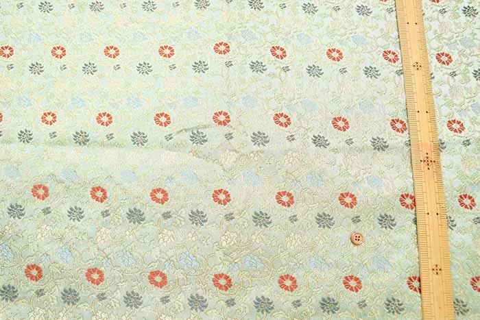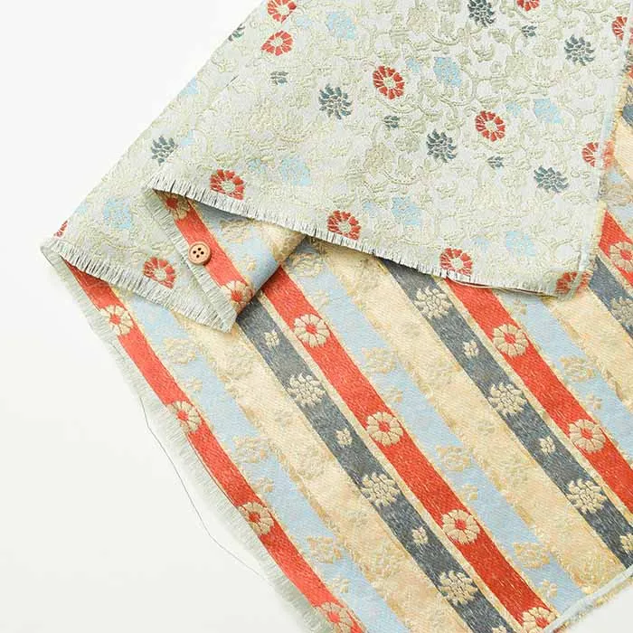 金糸や銀糸に色糸を交えて緯糸にし、紋様が浮き上がるように織った紋織物のひとつです。