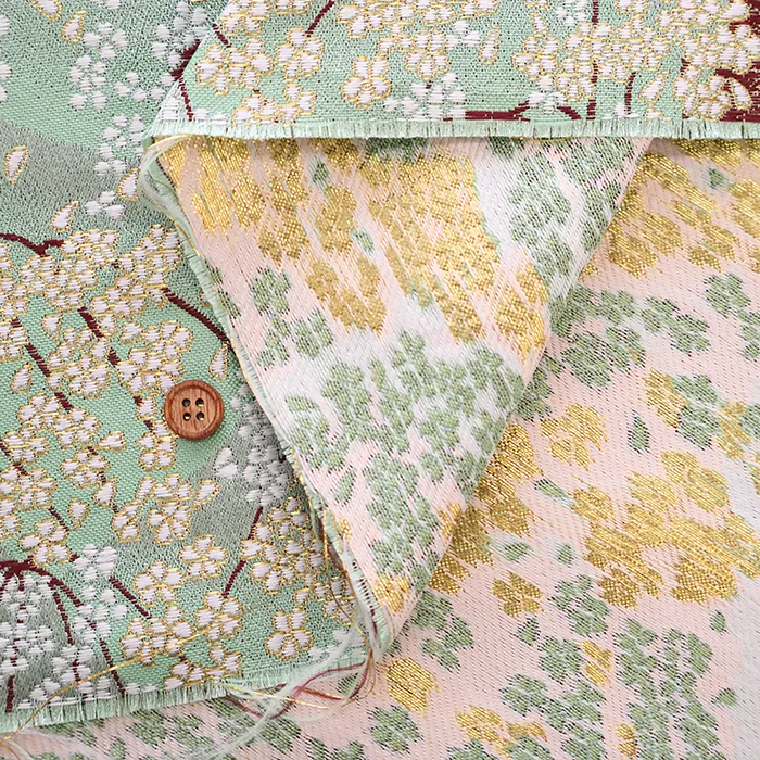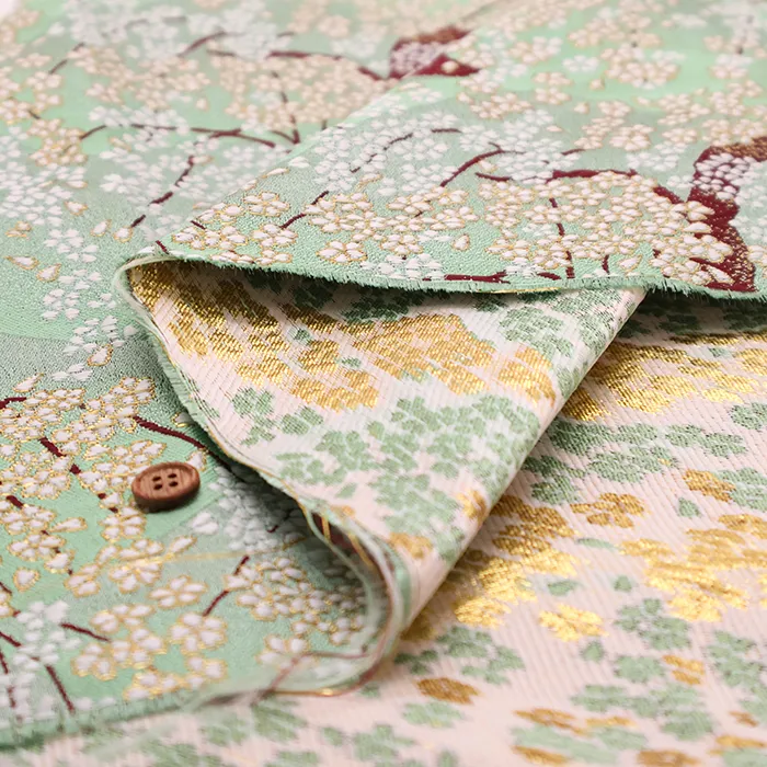 金糸や銀糸に色糸を交えて緯糸にし、紋様が浮き上がるように織った紋織物のひとつです。
