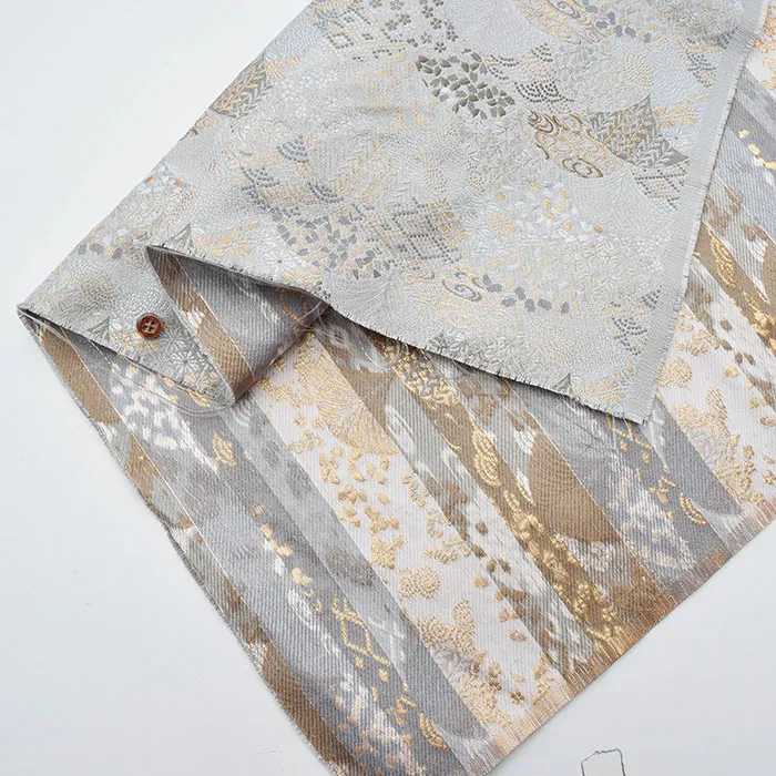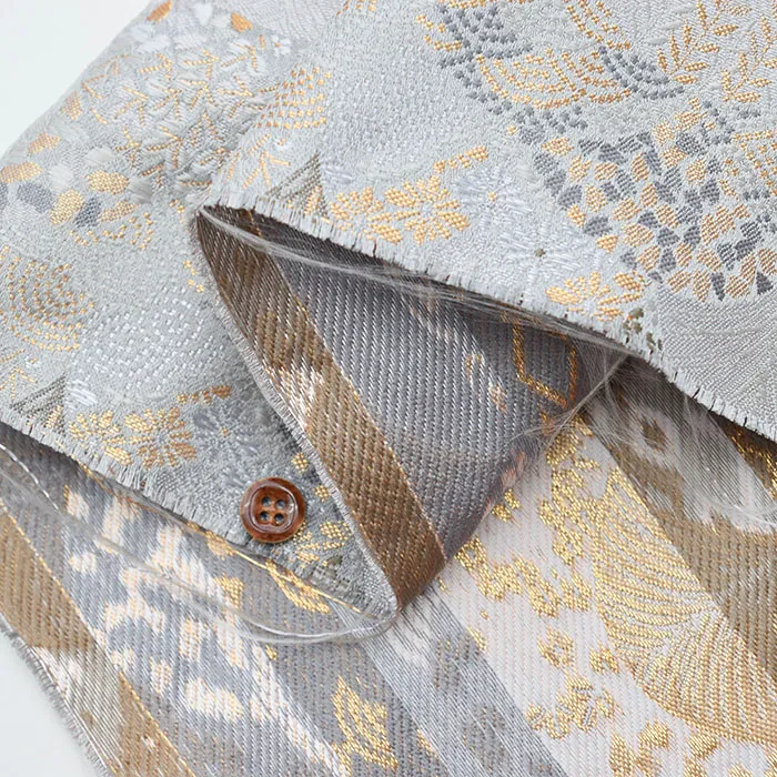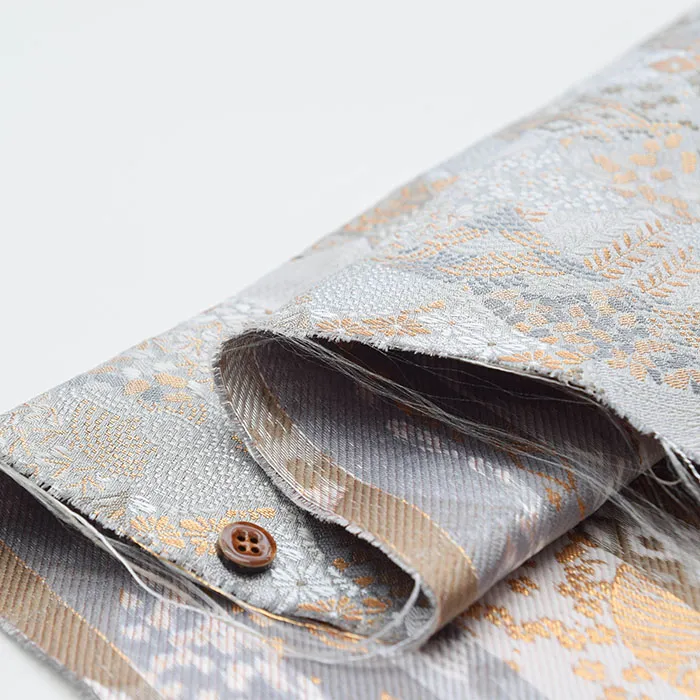 金糸や銀糸に色糸を交えて緯糸にし、紋様が浮き上がるように織った紋織物のひとつです。