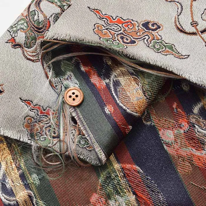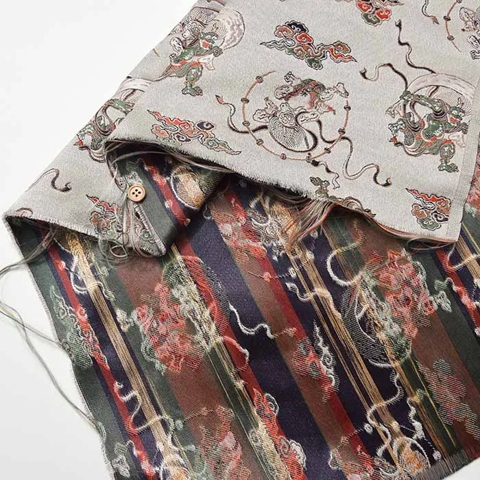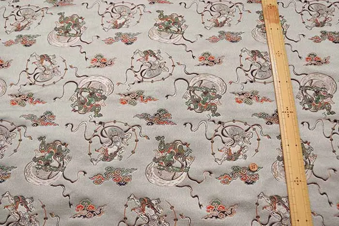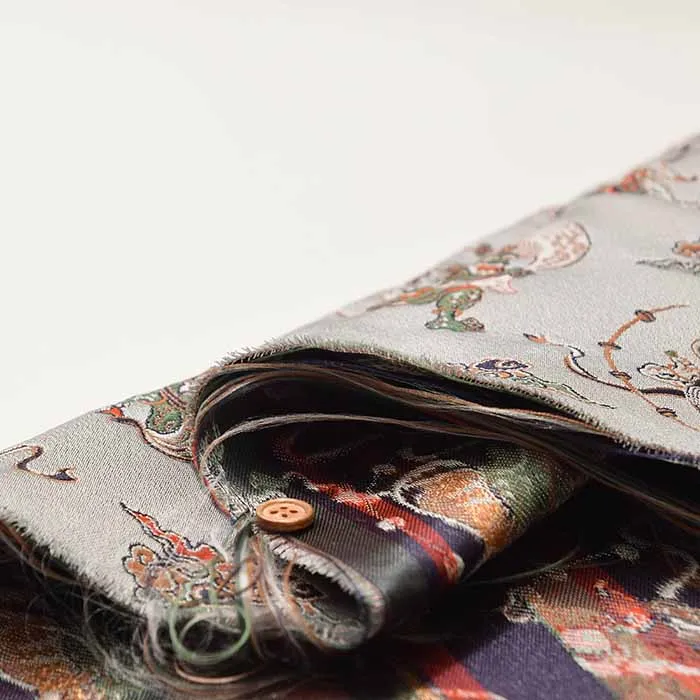 金糸や銀糸に色糸を交えて緯糸にし、紋様が浮き上がるように織った紋織物のひとつです。