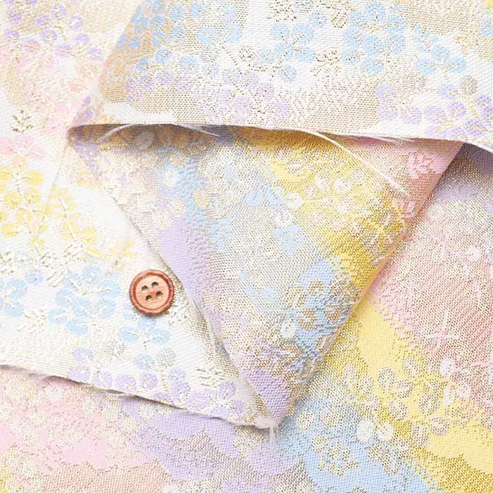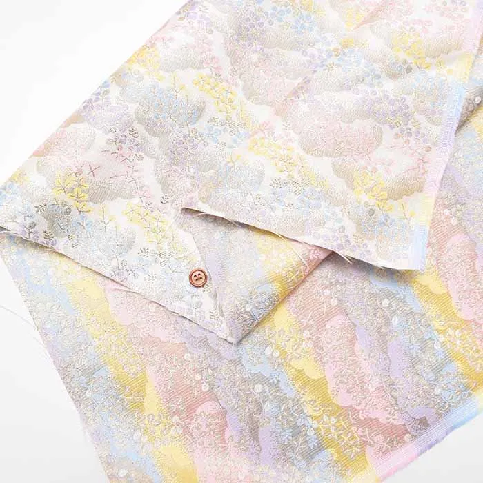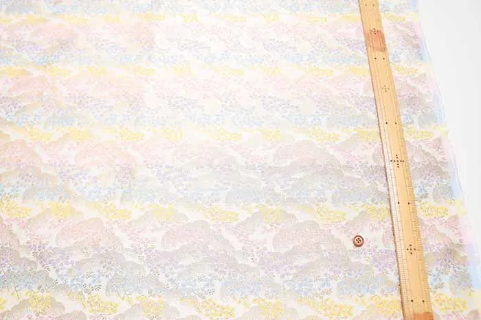 金糸や銀糸に色糸を交えて緯糸にし、紋様が浮き上がるように織った紋織物のひとつです。