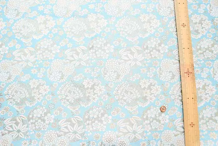 金糸や銀糸に色糸を交えて緯糸にし、紋様が浮き上がるように織った紋織物のひとつです。
