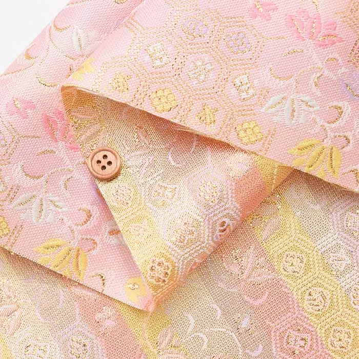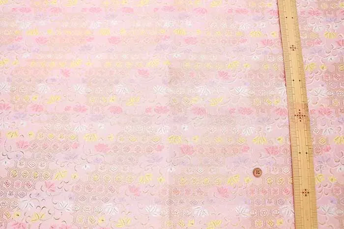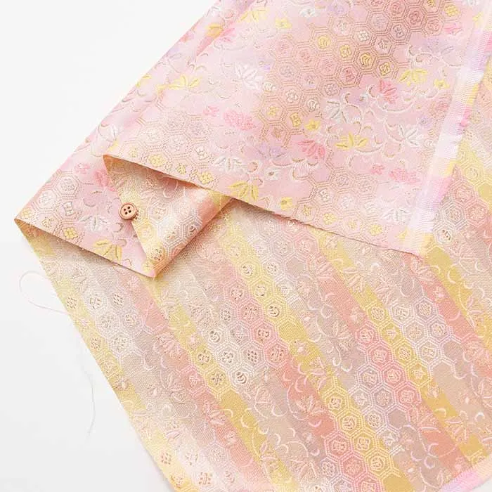 金糸や銀糸に色糸を交えて緯糸にし、紋様が浮き上がるように織った紋織物のひとつです。