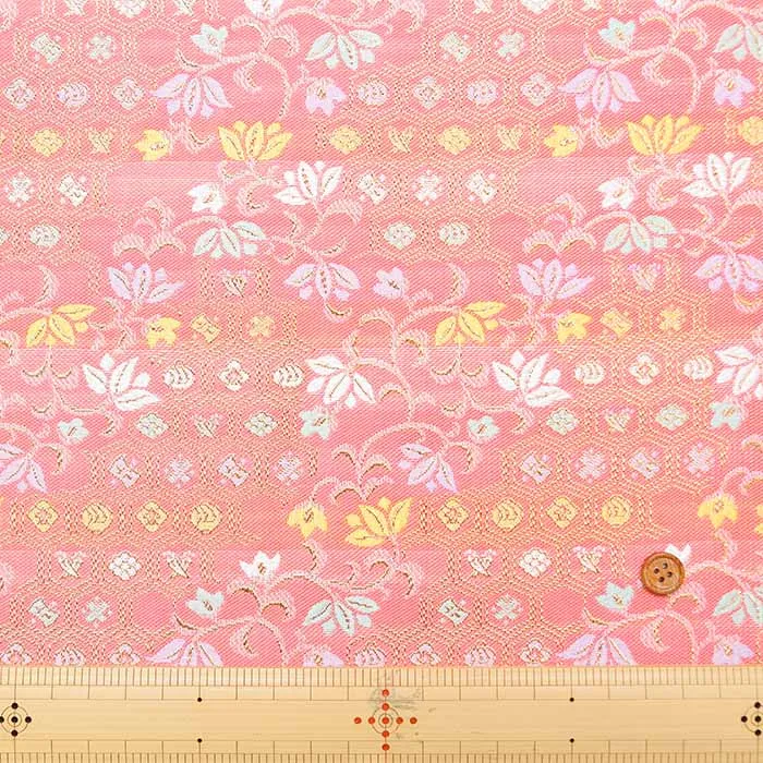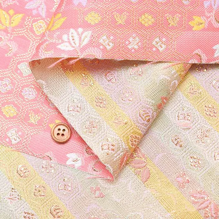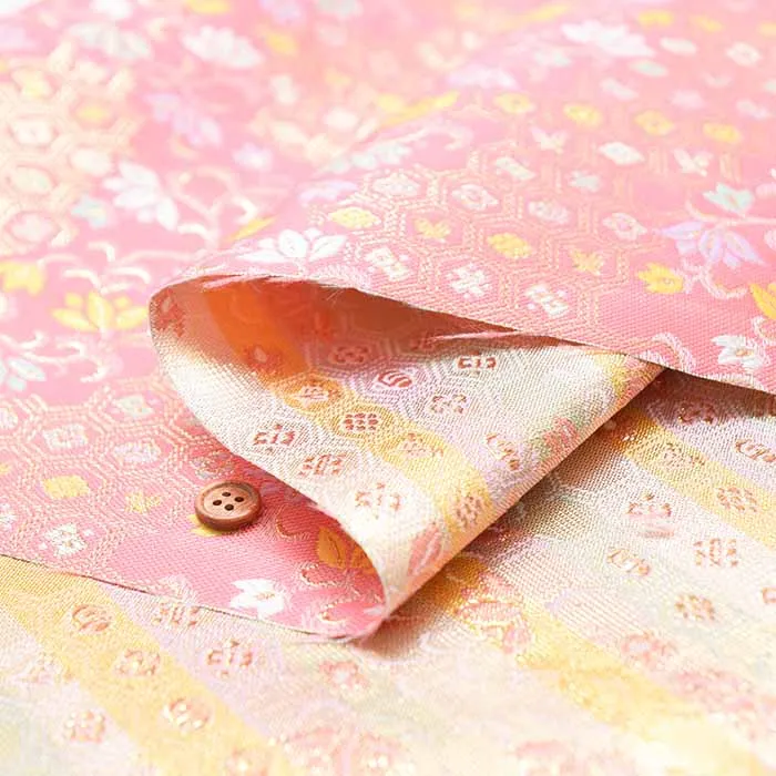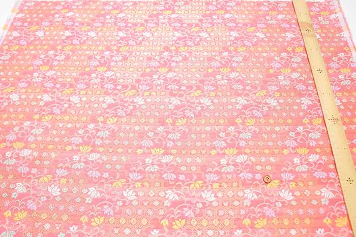 金糸や銀糸に色糸を交えて緯糸にし、紋様が浮き上がるように織った紋織物のひとつです。