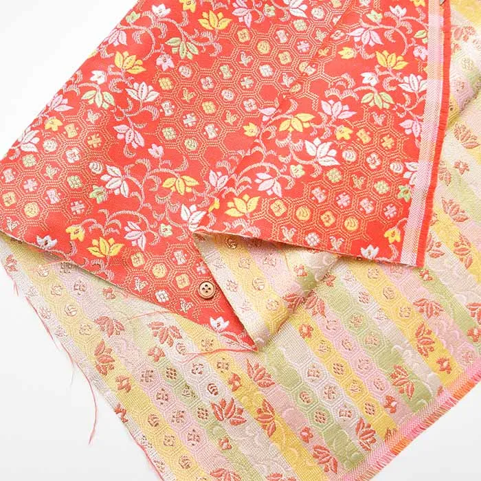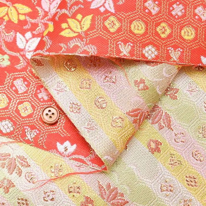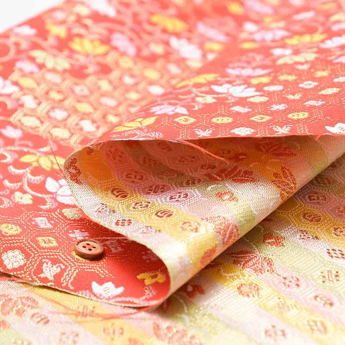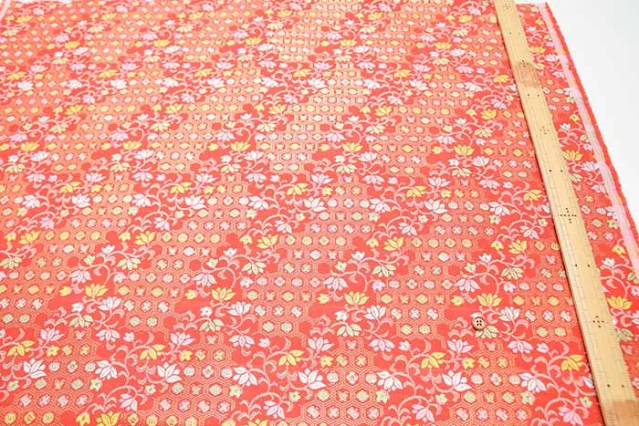 金糸や銀糸に色糸を交えて緯糸にし、紋様が浮き上がるように織った紋織物のひとつです。