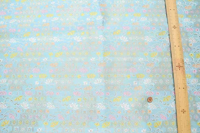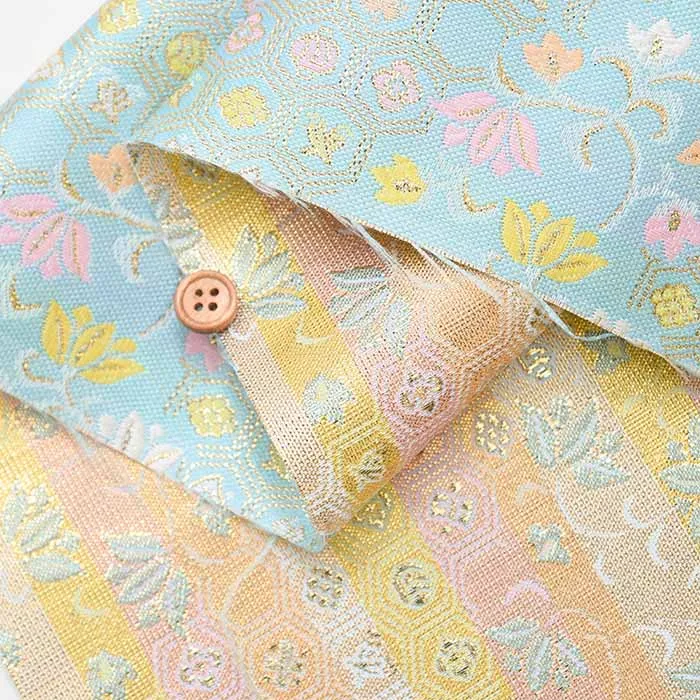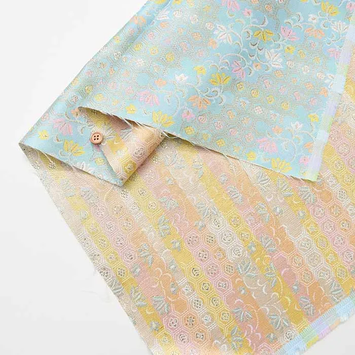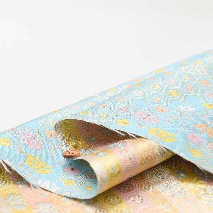 金糸や銀糸に色糸を交えて緯糸にし、紋様が浮き上がるように織った紋織物のひとつです。