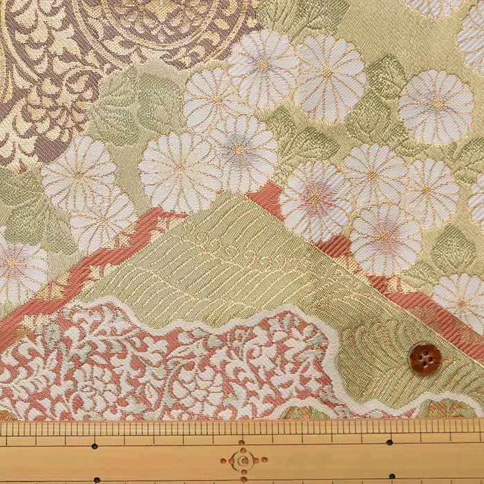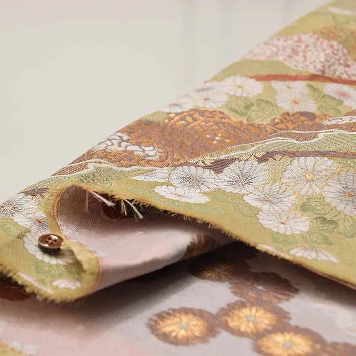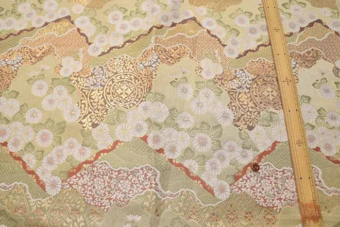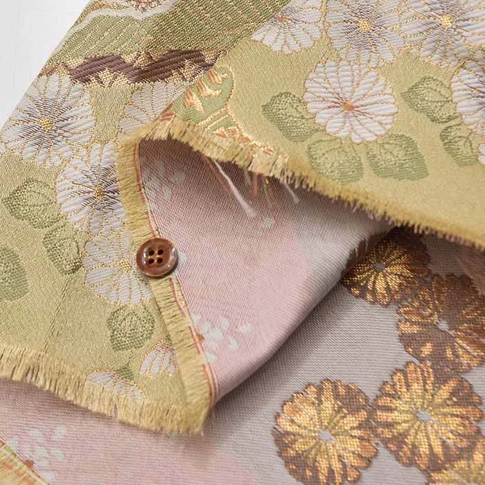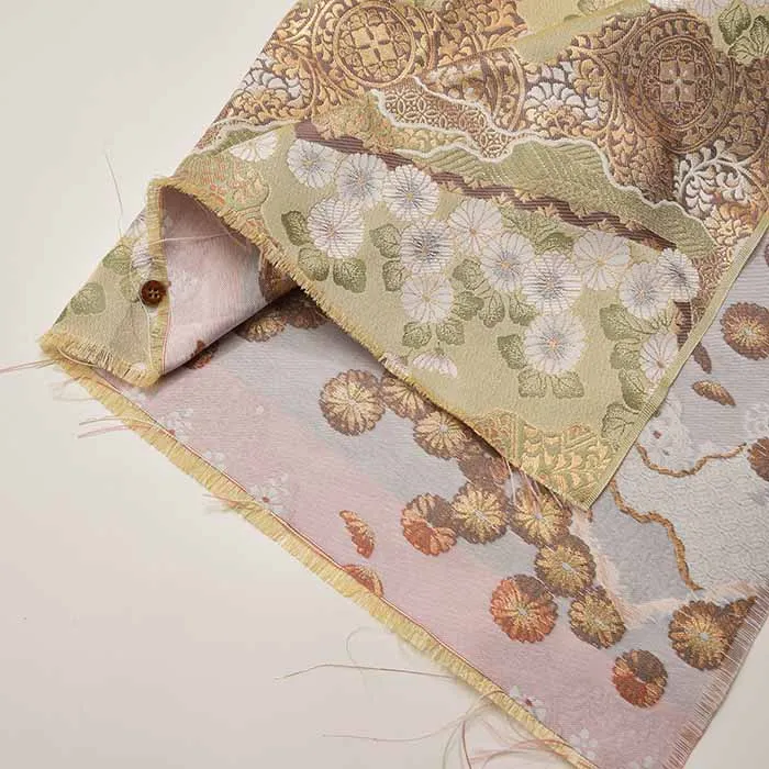 金糸や銀糸に色糸を交えて緯糸にし、紋様が浮き上がるように織った紋織物のひとつです。