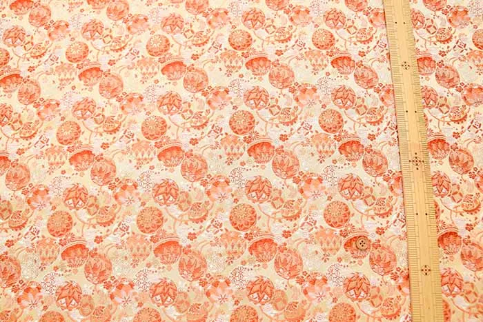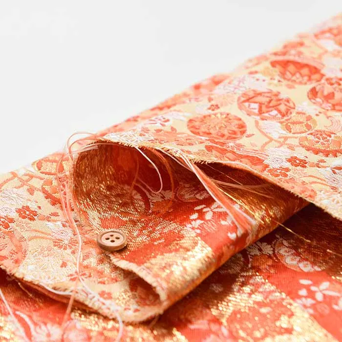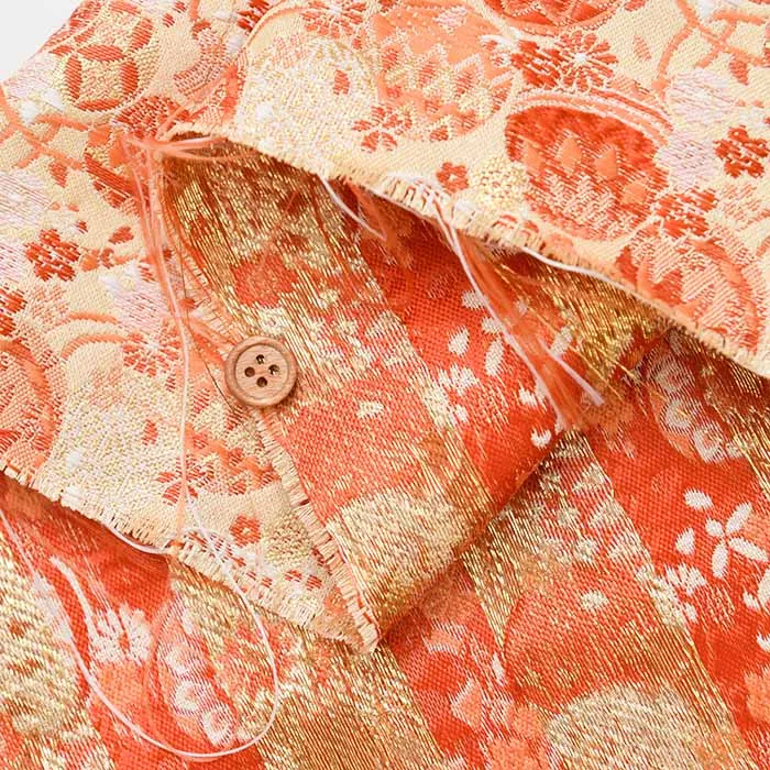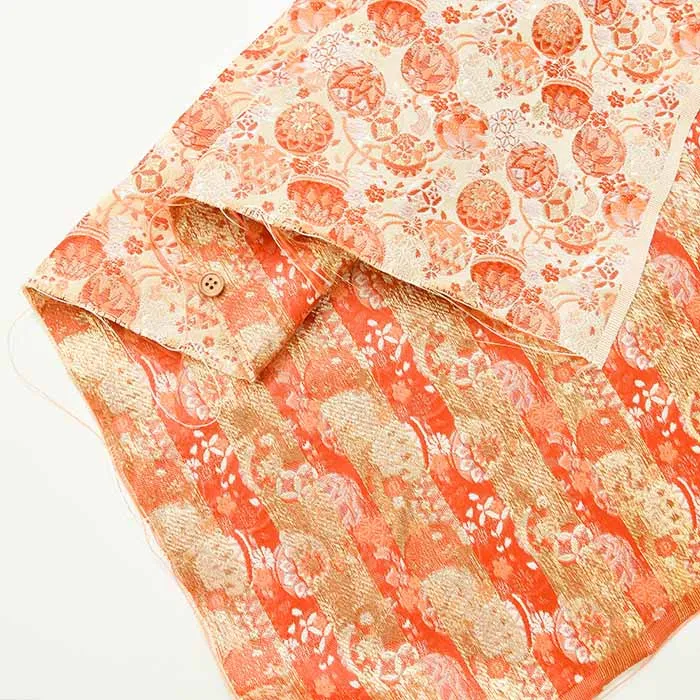 金糸や銀糸に色糸を交えて緯糸にし、紋様が浮き上がるように織った紋織物のひとつです。