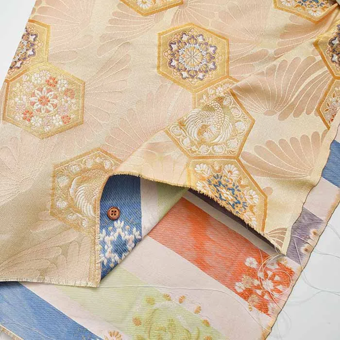 金糸や銀糸に色糸を交えて緯糸にし、紋様が浮き上がるように織った紋織物のひとつです。