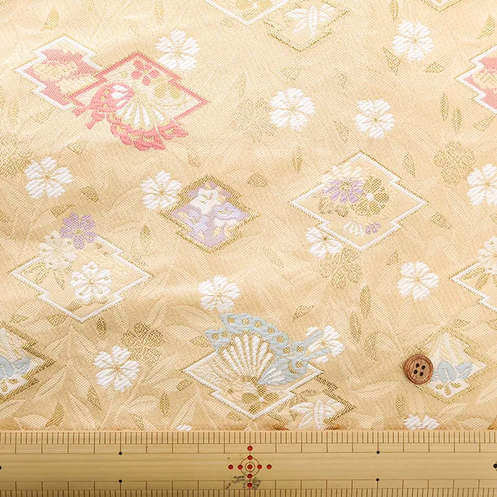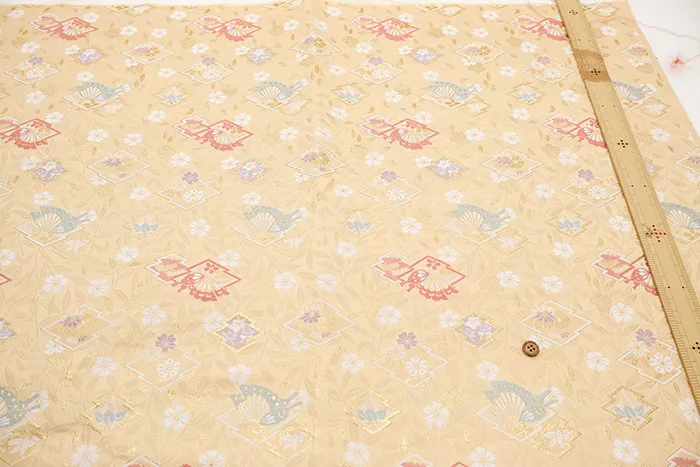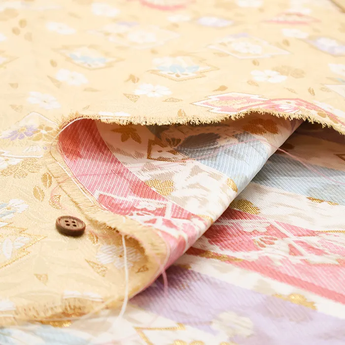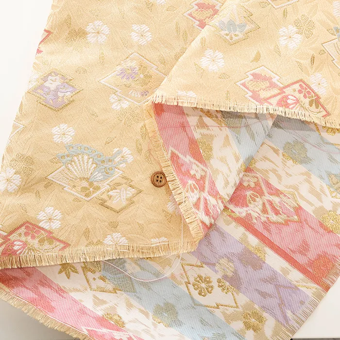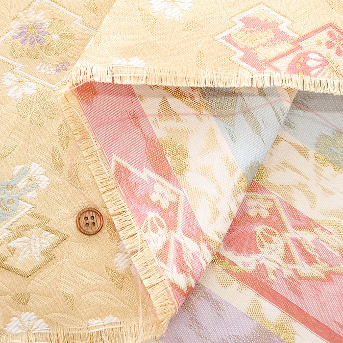 金糸や銀糸に色糸を交えて緯糸にし、紋様が浮き上がるように織った紋織物のひとつです。