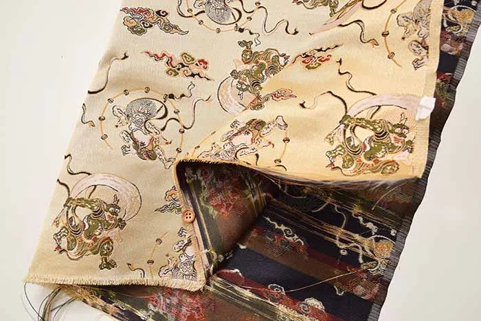 まるで着物の帯のような、京都らしい金糸使いの綺麗な金襴。