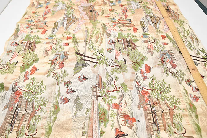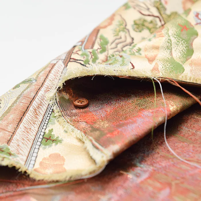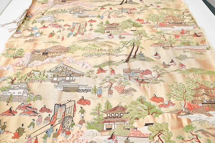 金糸や銀糸に色糸を交えて緯糸にし、紋様が浮き上がるように織った紋織物のひとつです。