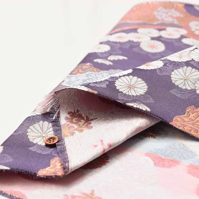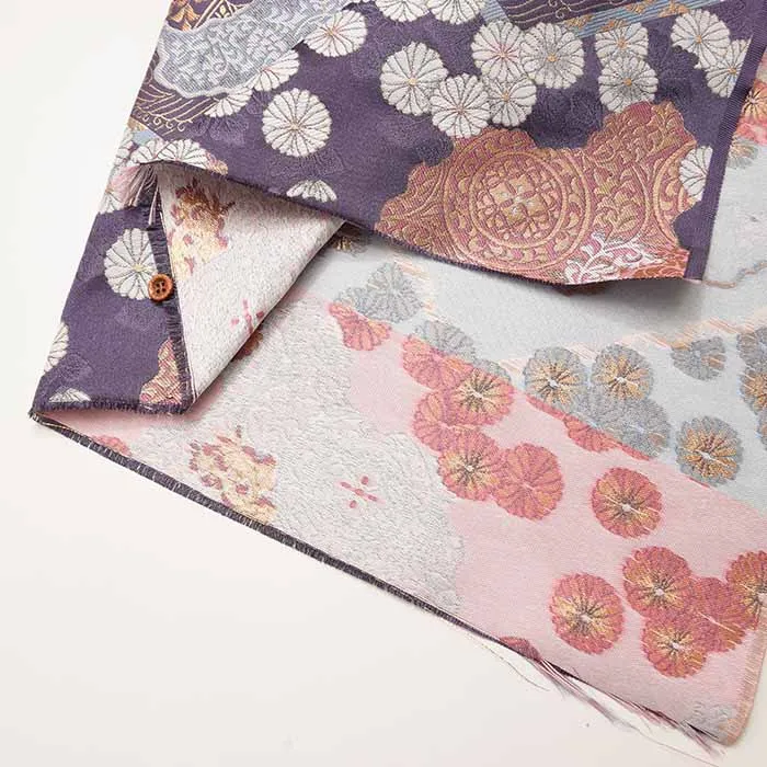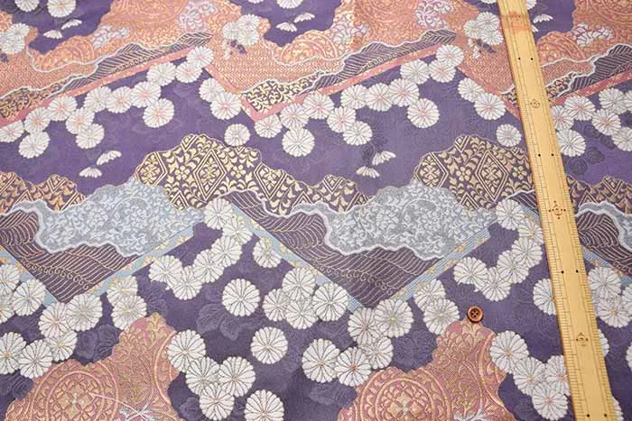 金糸や銀糸に色糸を交えて緯糸にし、紋様が浮き上がるように織った紋織物のひとつです。