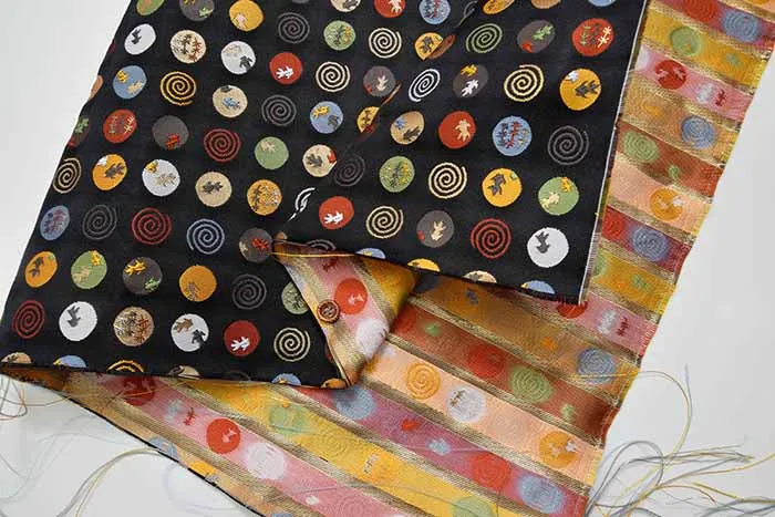 まるで着物の帯のような、京都らしい金糸使いの綺麗な金襴。