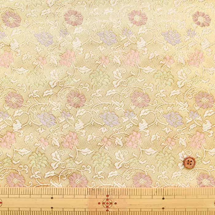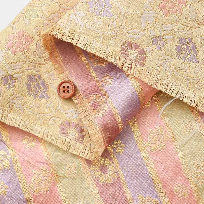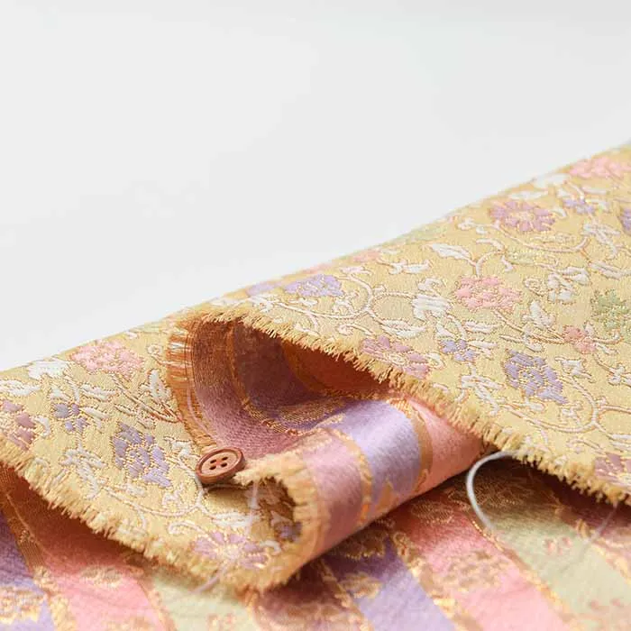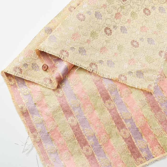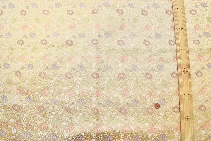 金糸や銀糸に色糸を交えて緯糸にし、紋様が浮き上がるように織った紋織物のひとつです。