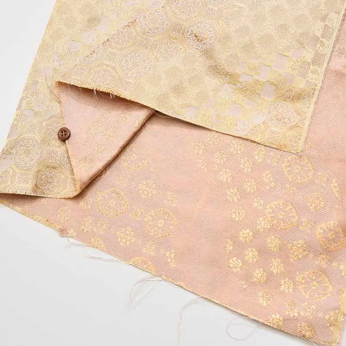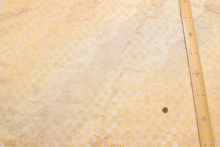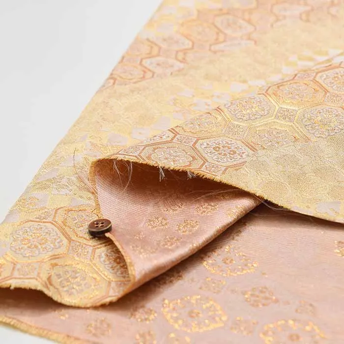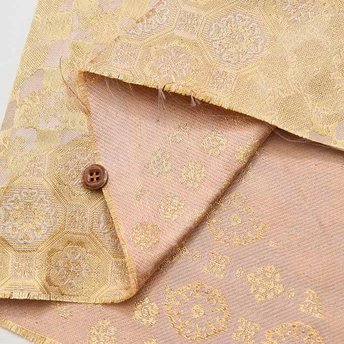 金糸や銀糸に色糸を交えて緯糸にし、紋様が浮き上がるように織った紋織物のひとつです。