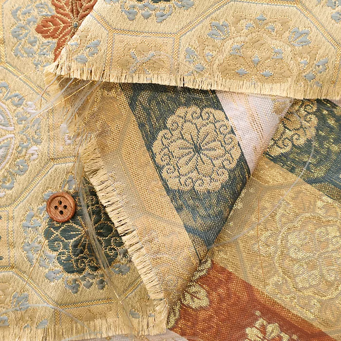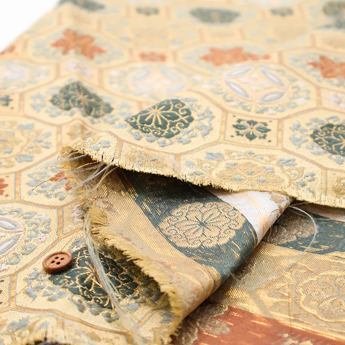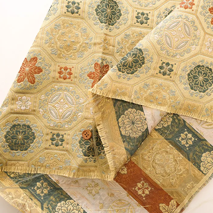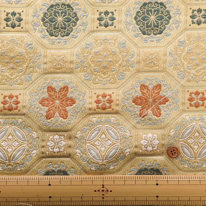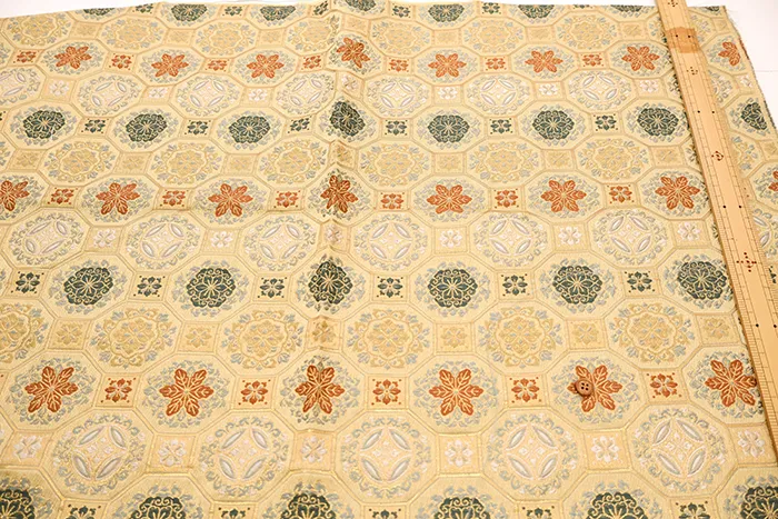 金糸や銀糸に色糸を交えて緯糸にし、紋様が浮き上がるように織った紋織物のひとつです。