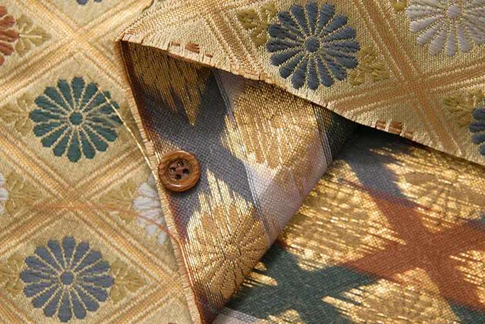 まるで着物の帯のような、京都らしい金糸使いの綺麗な金襴。