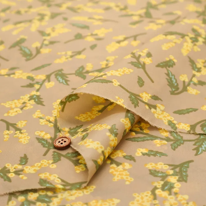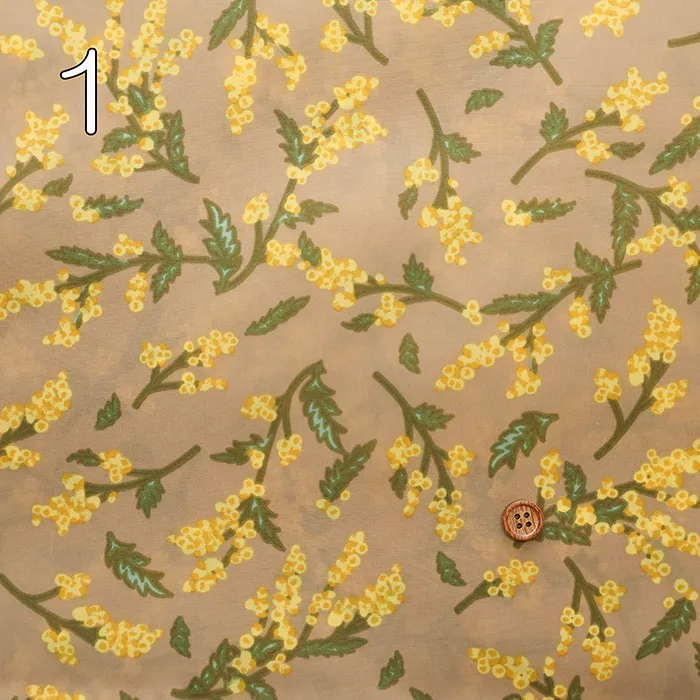 撥水加工ナイロンタフタプリント生地 ミモザ(2-051-my1100)