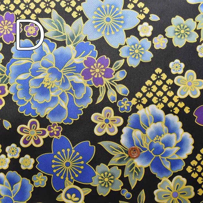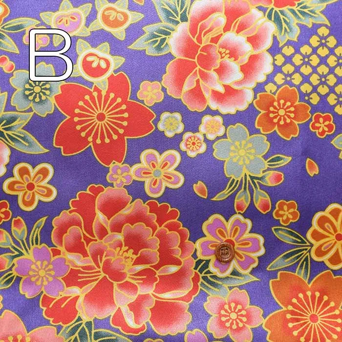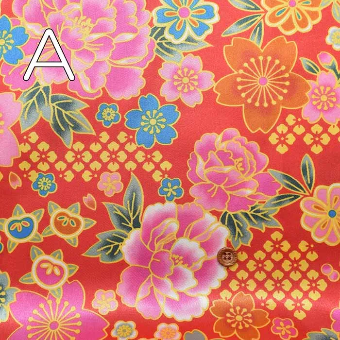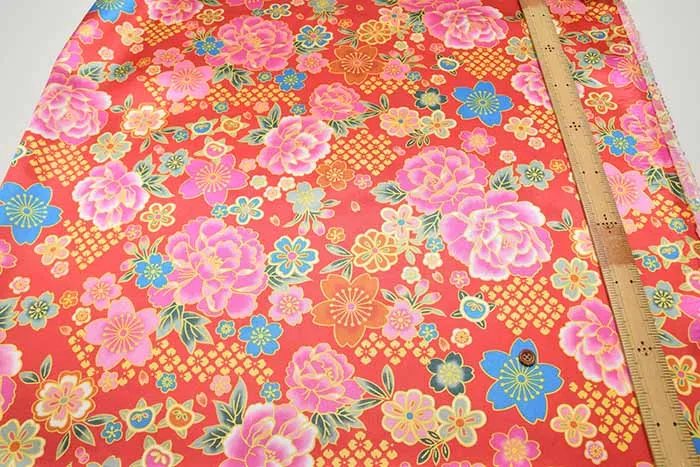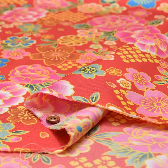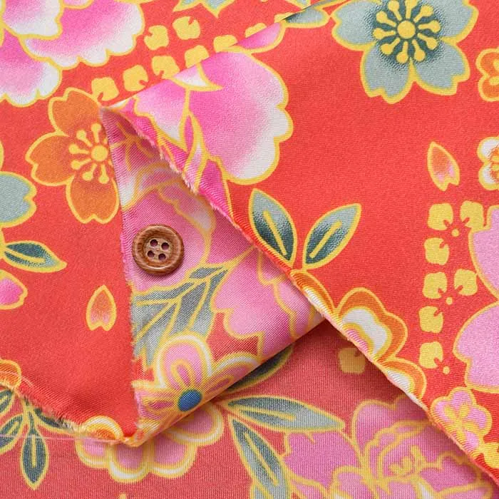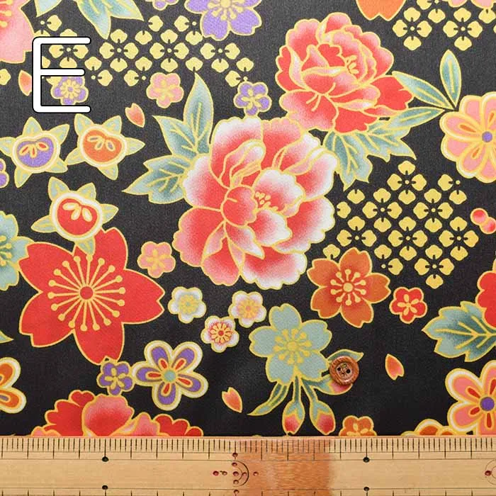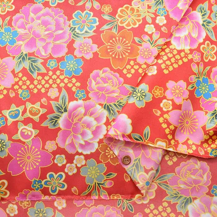 ポリエステルサテン和柄プリント生地 牡丹と桜