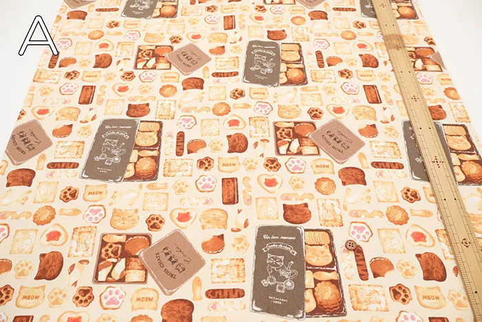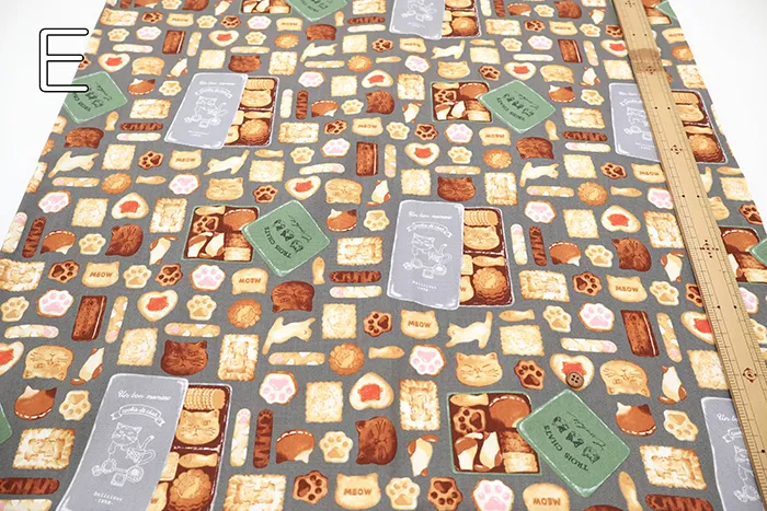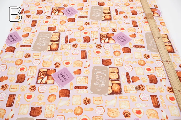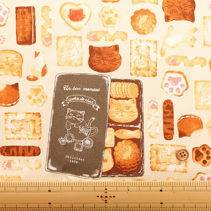 コットンオックスプリント生地 ネコのクッキー缶