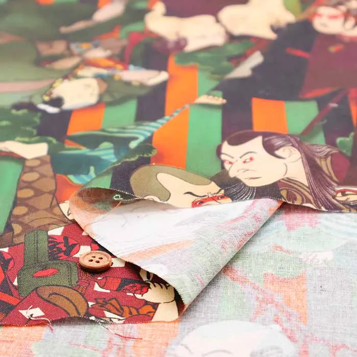 中国製 コットンシーチングインクジェットプリント かぶき