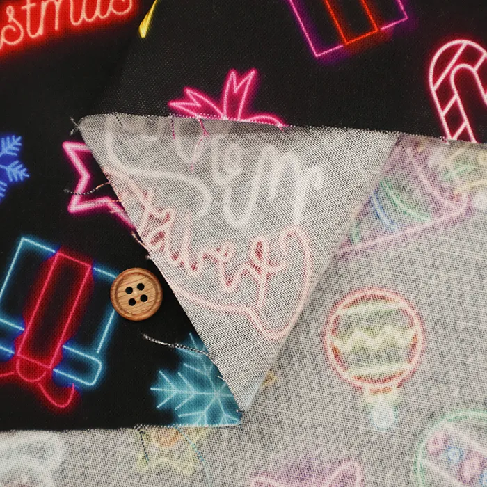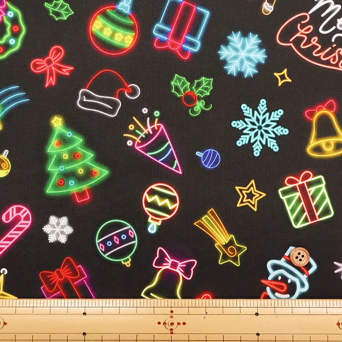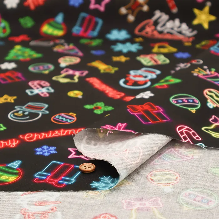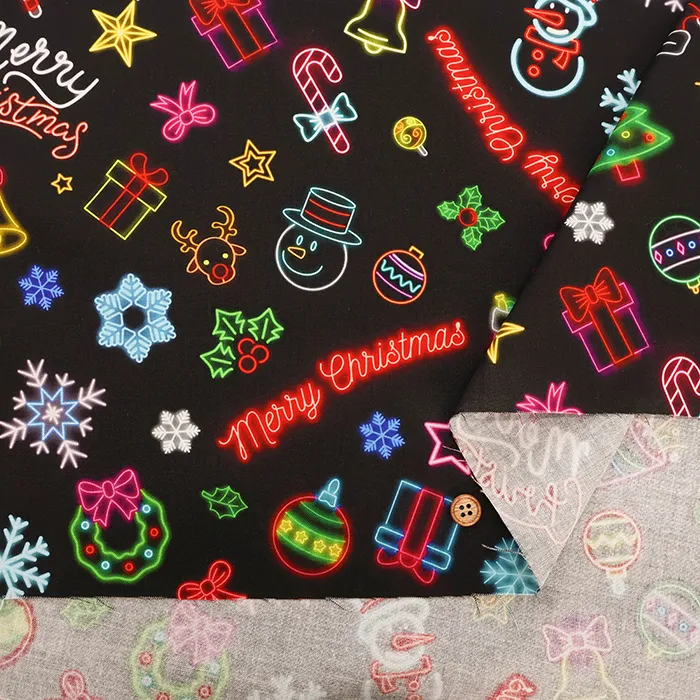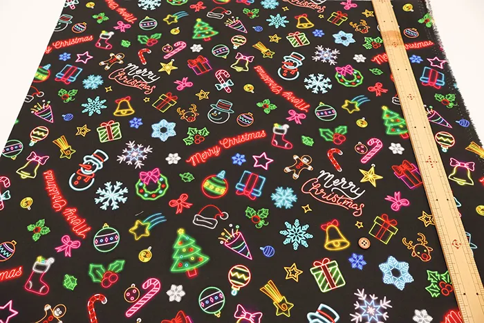 中国製 コットンシーチングインクジェットプリント生地 ネオンクリスマス