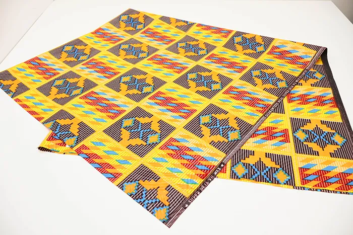 色鮮やかで美しいアフリカンプリントにワックス加工が施された生地です。