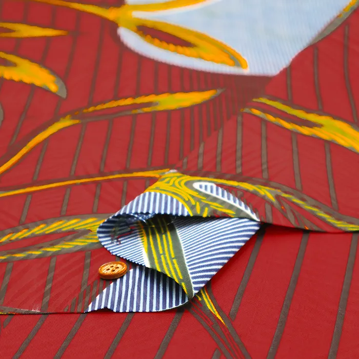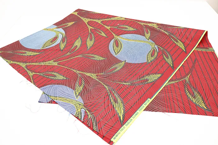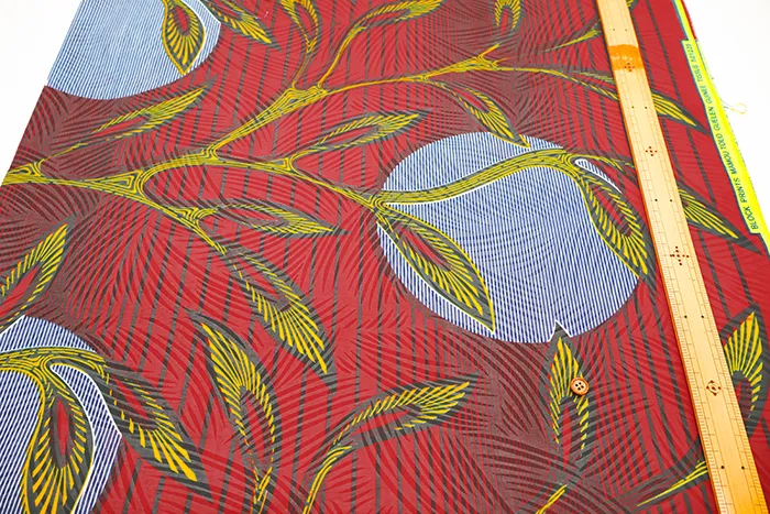 色鮮やかで美しいアフリカンプリントにワックス加工が施された生地です。