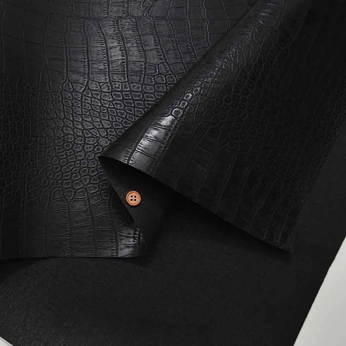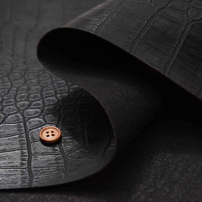 表面に凹凸を付けた、型押しレザー風の合皮生地。