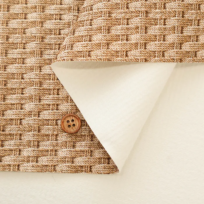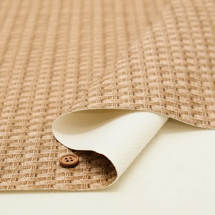 表面に凹凸を付けた、型押しレザー風の合皮生地。