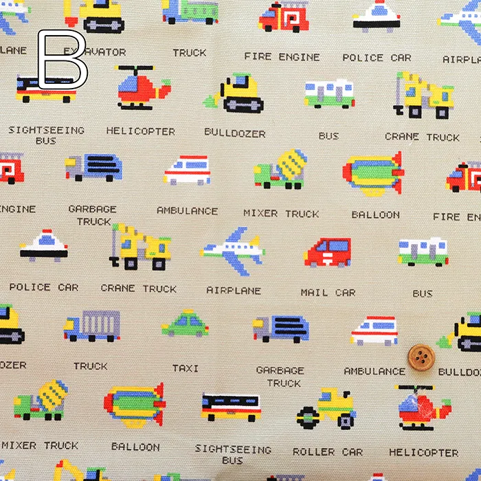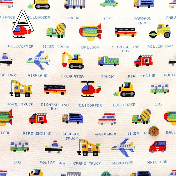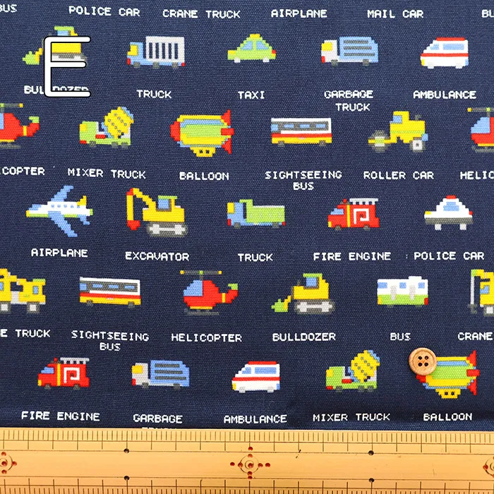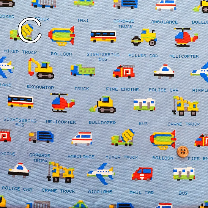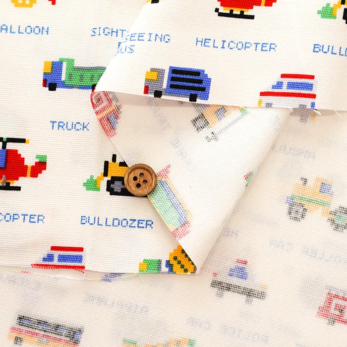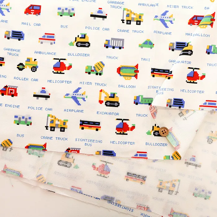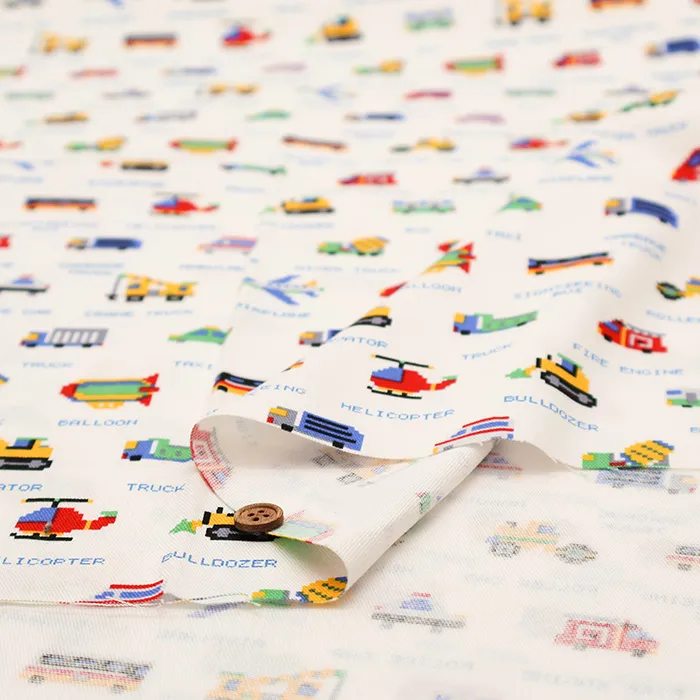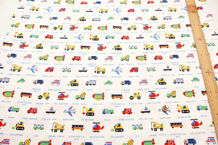 コットンオックスプリント生地 ピクセルドット 乗り物