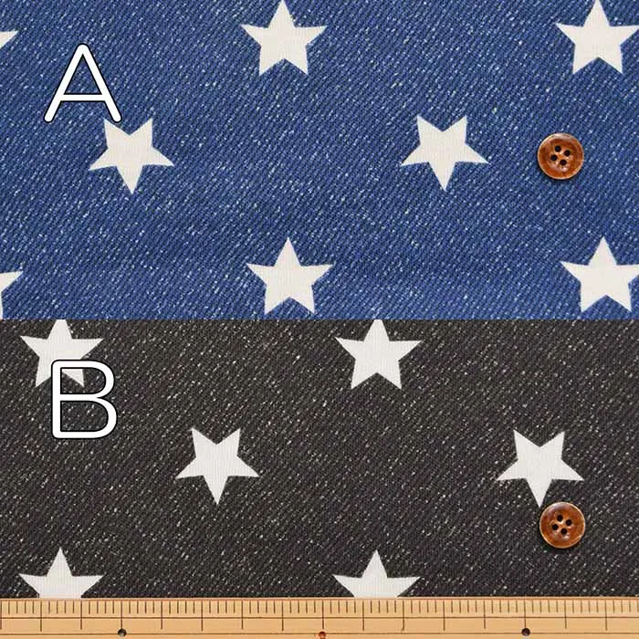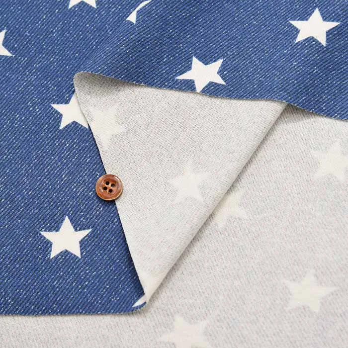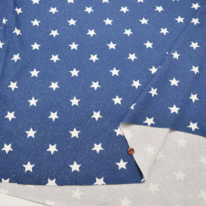 コットンデニム調スムースニット生地 スター