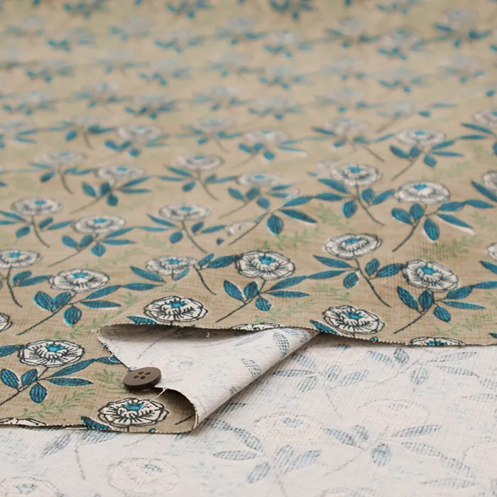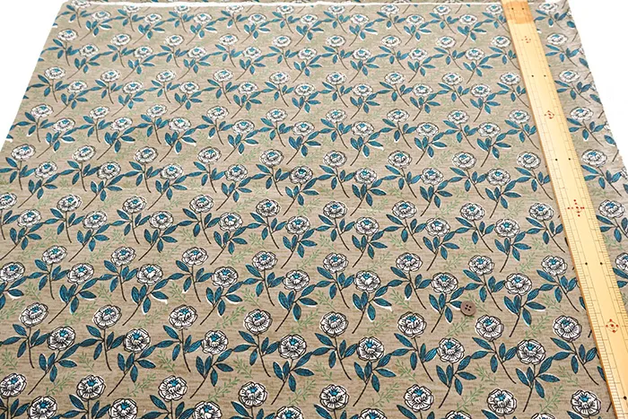 こちらは無地染めの布から模様に合わせて色を白く抜いて、さらに色を入れて模様を染める抜染加工が施されています。