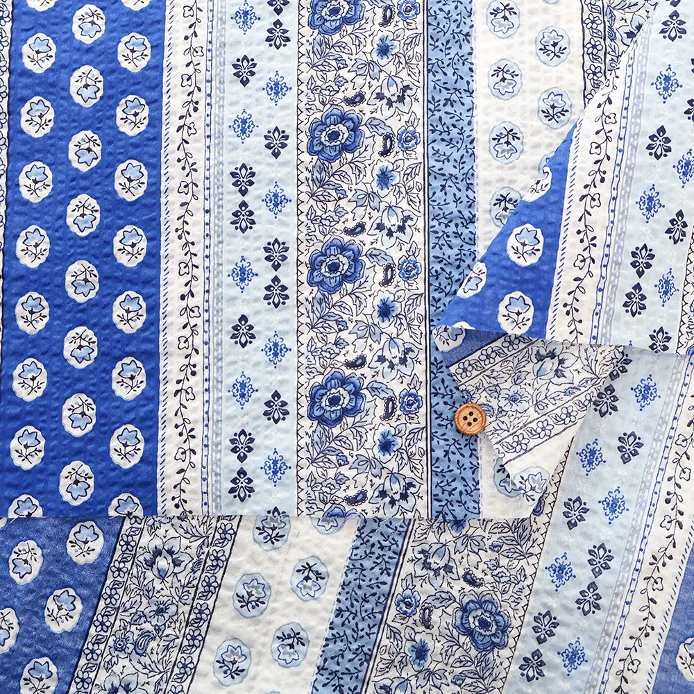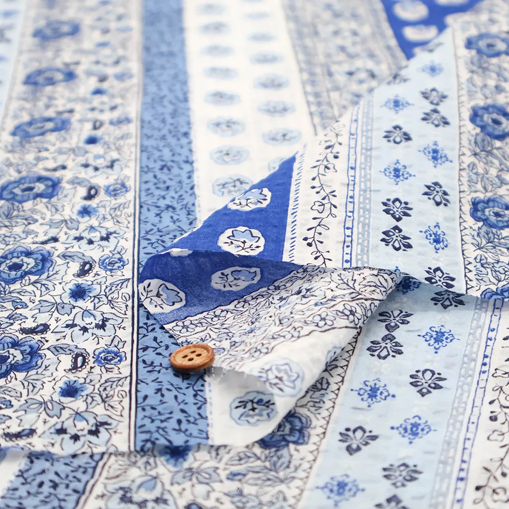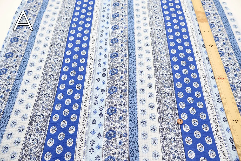 コットン80ローンリップルプリント生地 プロバンスストライプ