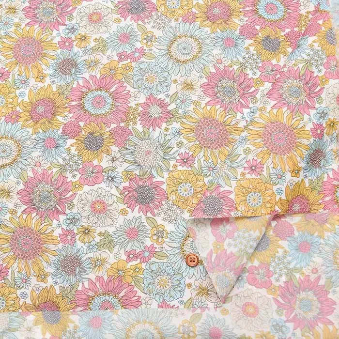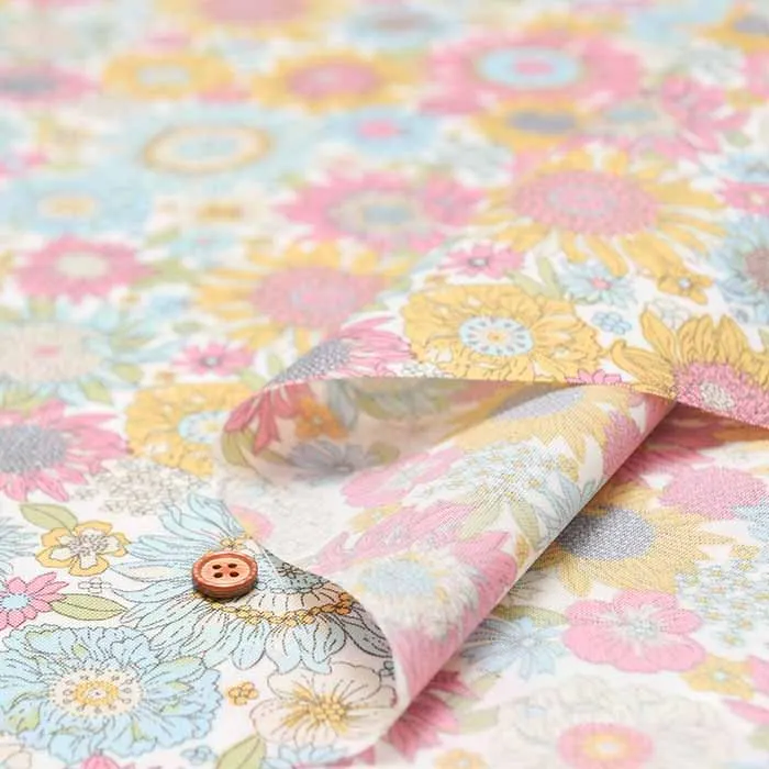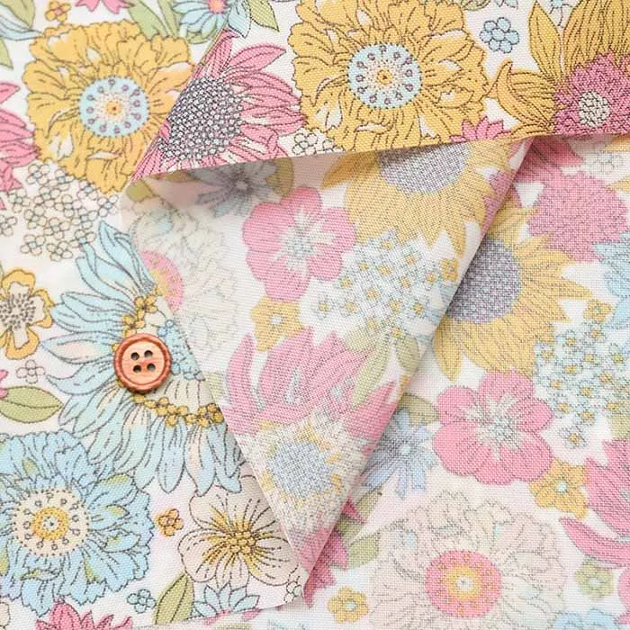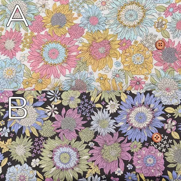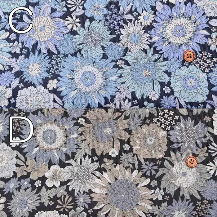 撥水加工 ナイロンオックスプリント生地 フラワー(2-060-ne-80007-13)