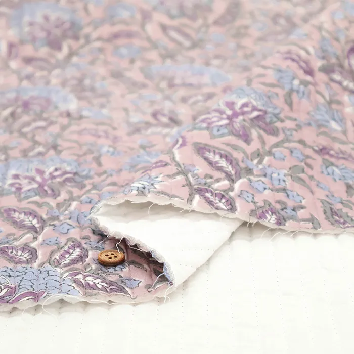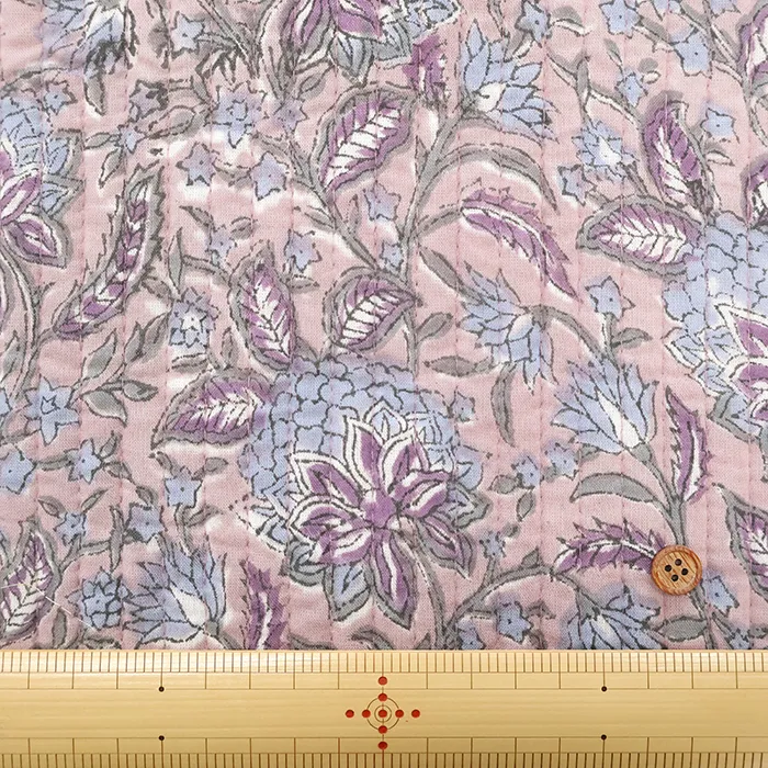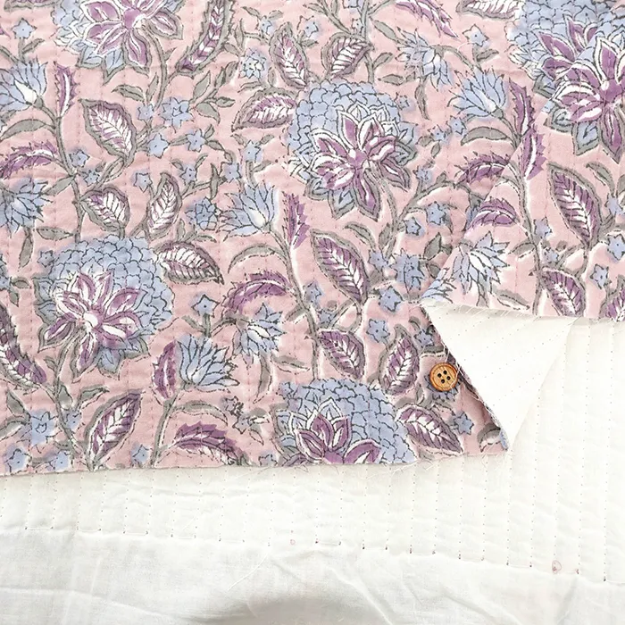 インドのハンドブロックプリント生地を表に使用した、キルト生地です。